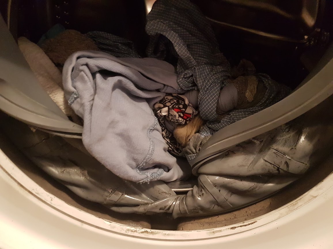 Extrém esetben, mint a képen is látszik, a mellécsukott ruha a dob forgásának következtében magára csavarta az üstszájgumit, a dob egy idő után megszorult, és mivel a hosszbordás szíj nem szakadt el, a motor forgórésze leégett. Ebben az esetben a mosógép javítása gazdaságtalan lett volna…